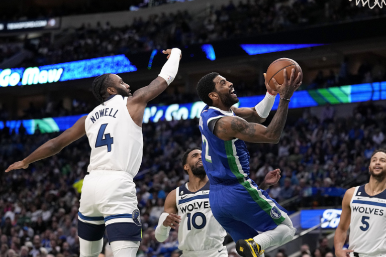 NBA 亮点:吉祥坊达拉斯小牛队的凯里欧文在对阵明尼苏达森林狼队的比赛中投篮